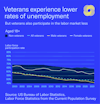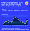 As they bring highly valuable skills to the workplace, veterans tend to face lower rates of unemployment. However, veterans participate in the labor force at significantly lower rates than non-veterans. Interestingly, labor force participation for female veterans is considerably higher than their male counterparts.