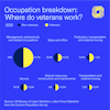 When it comes to occupations, more than 40% of all veterans work in a management, professional, and related occupations, followed by 17.5% who work in a production, transportation, and material moving occupation.