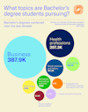 Despite the demand for talent in the technology, healthcare, and oil industries, degrees in business continue to outpace other majors by far. Healthcare is a close second, with social sciences coming in third.