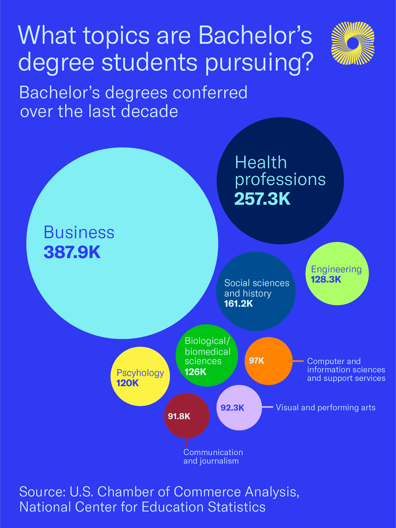 However, the degrees undergraduate and graduate students are pursuing are not necessarily aligned with the projected jobs that will be available over the next ten years.