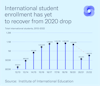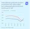 Nevertheless, neither graduate nor undergraduate of international students has reached its pre-pandemic peaks. International graduate student enrollment is still 1.6% below its peak in 2016/17, whereas enrollment for international undergraduate students is 22.2% below its peak in 2017/18.