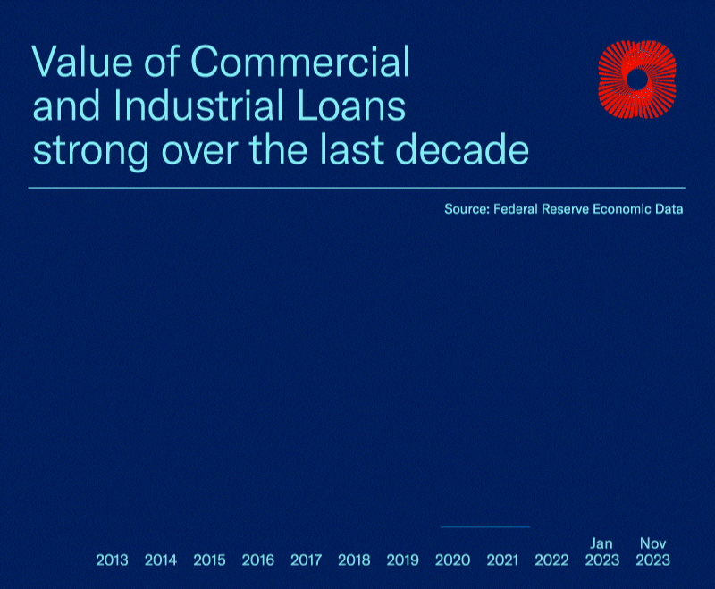For smaller businesses, Commercial and Industrial (C&I) Loans are their primary source of vital capital to grow and thrive. The value of C&I loans issued has been strong.