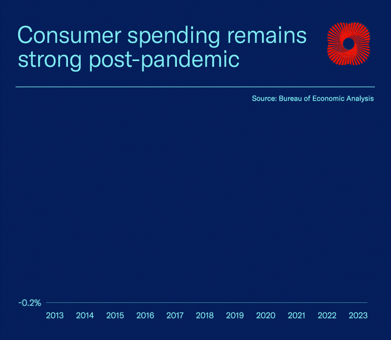 Bottom line: Padded savings and more availability of credit card debt from the pandemic shutdown have been helping customers keep up with inflation, but this cannot last indefinitely and is a trend to watch in 2024. The economy will slow if consumer spending drops due to lingering inflation and higher interest rates.