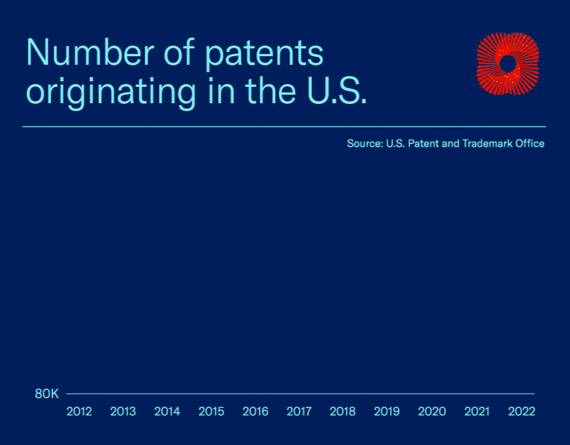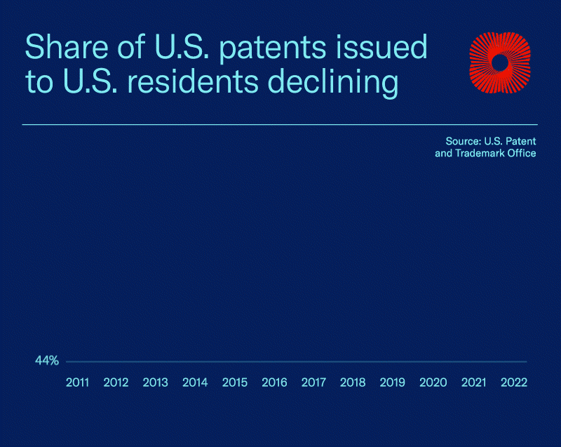 The pandemic brought the number of patents issued in the U.S. down, but only slightly. However, while the number of patents issued is strong, less than half go to U.S. residents.