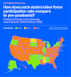 There are some states that have a higher percentage of their labor force working than before the pandemic, but the majority have seen their labor forces shrink because of early retirements, increased savings, and less immigration, among other factors.