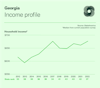Georgia's median household income of $67,730 is lower than the national average of around $70,000, which places the state at the 37th rank among all states. Georgia’s tax rate between 2% and 5.75% positions the state among the lower tiers of other state tax rates.