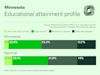 Ninety-four percent of Minnesota’s population has obtained their high school diploma or its equivalent, four and a half percentage points above the national average in 2022. 39% of the population in Minnesota has earned a bachelor's degree, while 13.7% have secured a graduate degree.