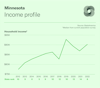 Minnesota's median household income of $90,390 ranks higher than the national average of $70,000 which places the state at the 8th rank among all states. Minnesota has a graduated tax rate system, ranging from 5.35% to 9.85%, which places the state among those with some of the highest tax rates.