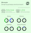 Minnesota boasts a thriving small business ecosystem, with 99.5% of all Minnesota businesses falling into this category. Nearly half of Minnesota's workforce works within small businesses. Within this dynamic landscape, women own 41.1% of small businesses, 9.6% are minority-owned, 2.5% are owned by Hispanics, and 2.5% are veteran-owned.