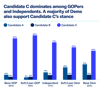 Large majorities of all voters across party breaks have a strong preference for the free market-based candidate C. Indeed, support for this candidate is driven by upwards of eighty percent of all Republicans, three quarters of Independents and on average sixty percent or more among base and lean Democrats.